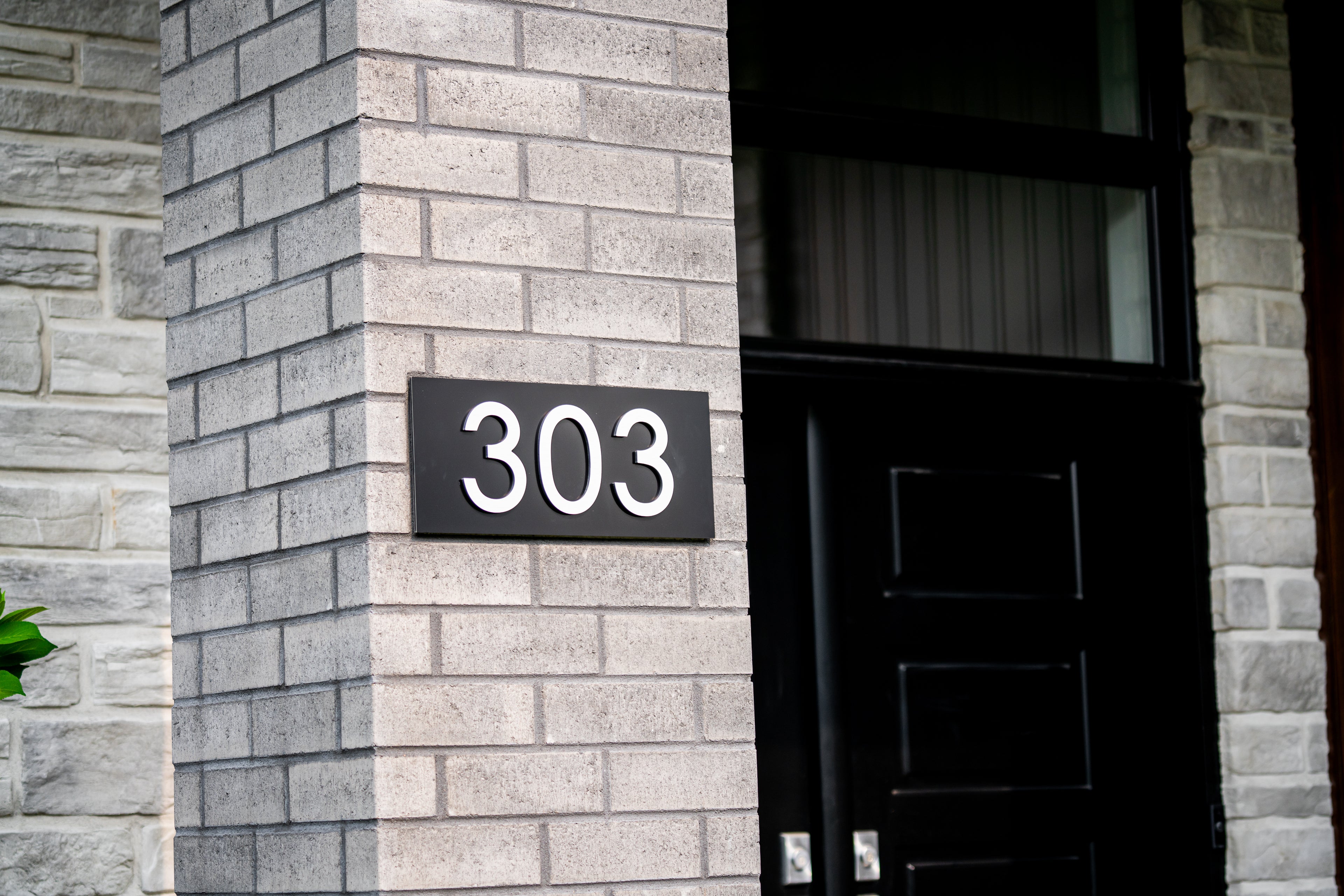 Tous nos produits sont pensés pour être simples et rapides à installer, peu importe le modèle que vous choisissez. Nous incluons des gabarits de positionnement qui vous aident à aligner parfaitement votre adresse ou votre plaque. De plus, une trousse d’installation complète est fournie pour faciliter le processus.